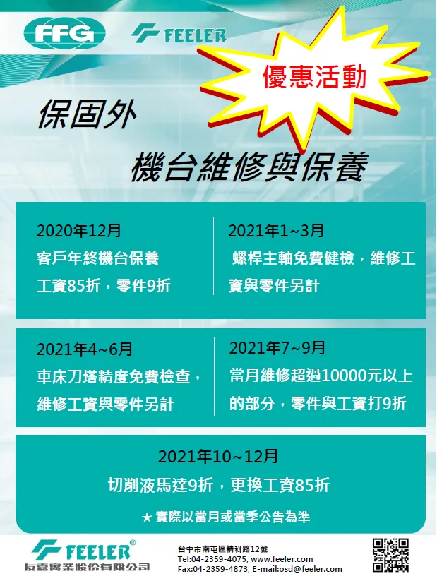 【台灣優惠活動】保固外,機台維修與保養