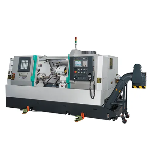 The FTC/FTB Series CNC lathes are known for compact design and high rigidity. The one-piece cast inclined bed provides excellent stability while minimizing floor space requirements, making them ideal for small to medium parts and flexible production layouts.
